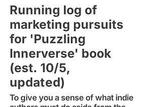 Running log of marketing pursuits for 'Puzzling Innerverse' book (est. 5Oct24, upd. 31Jul25)